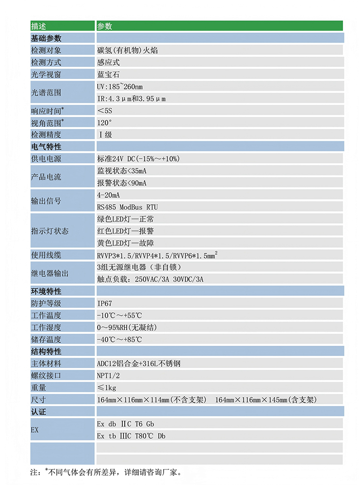 检测对象 | 碳氢(有机物)火焰 |