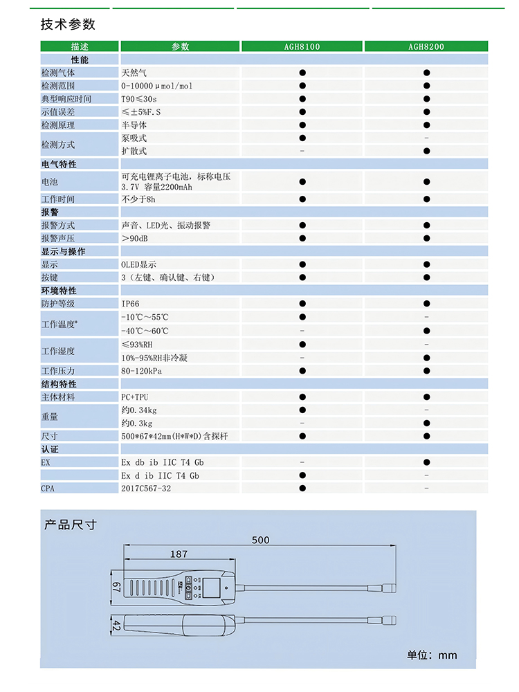产品尺寸:500mm*67mm*42mm(含探杆)