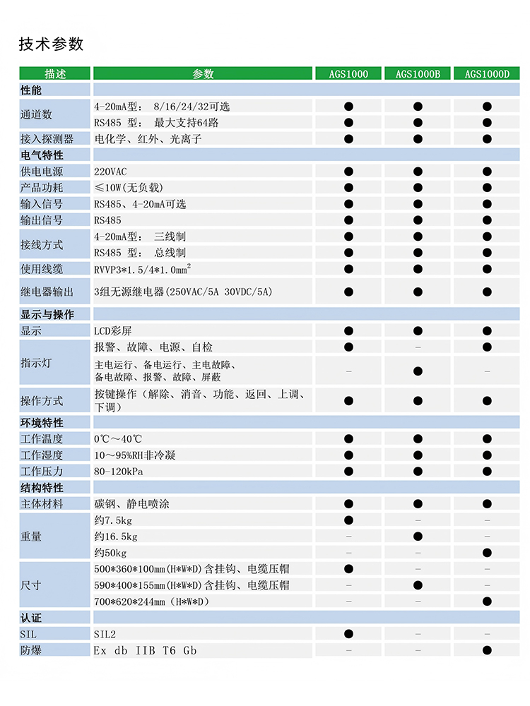 | ● AGS1000D为防爆款气体报警控制器,可满足不同工业场所的需求。 |